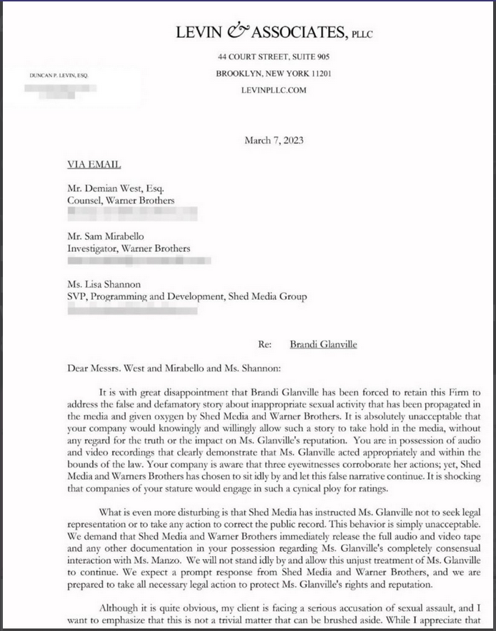 Brandi Glanville’s letter to Shed Media and Warner Brothers Demanding they release the footage with Ms. Manzo. Mar 12 Written By Lauren Pevehouse Lauren Pevehouse